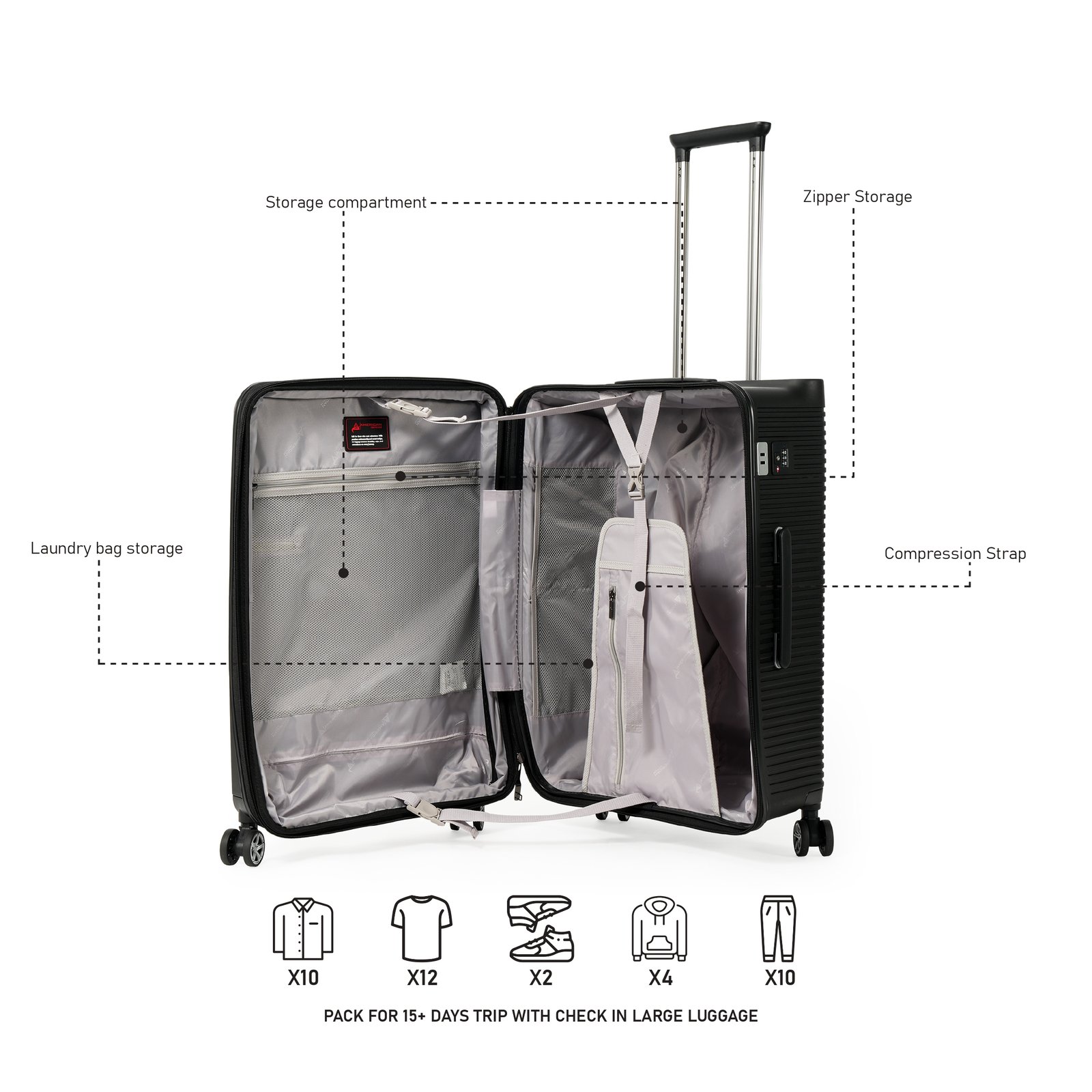 | 28″ – 4.8 kg (10.7 lbs) | 28″ – 68 liters | 28 Inches – 34.5 x 54 x 82 |
